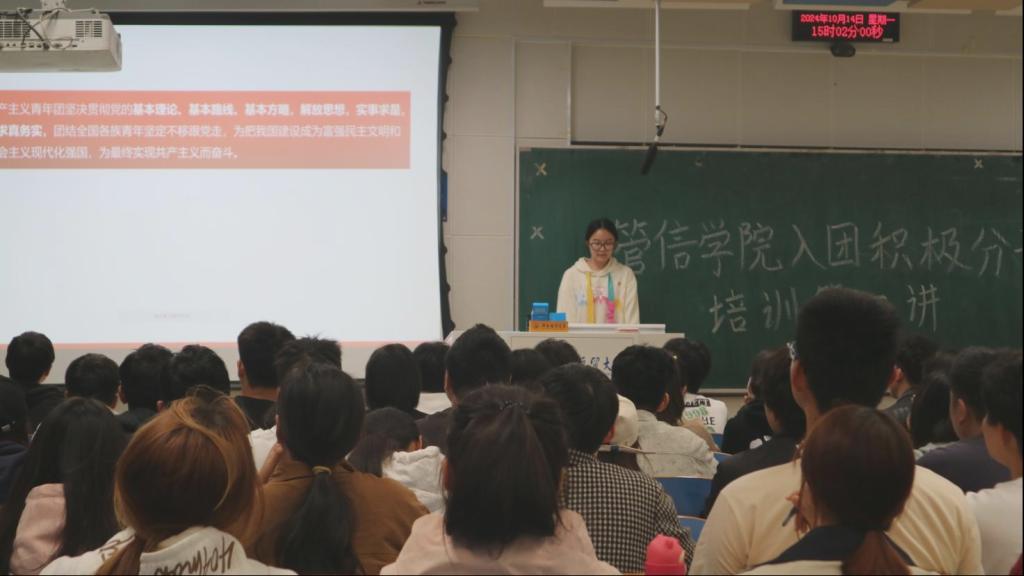 10月14日下午,太阳成集团122ccvip于北三教B301开展入团积极分子团课培训第二讲。本次团课培训由21级计科1班周慧鋆主讲,全体入团积极分子参加。