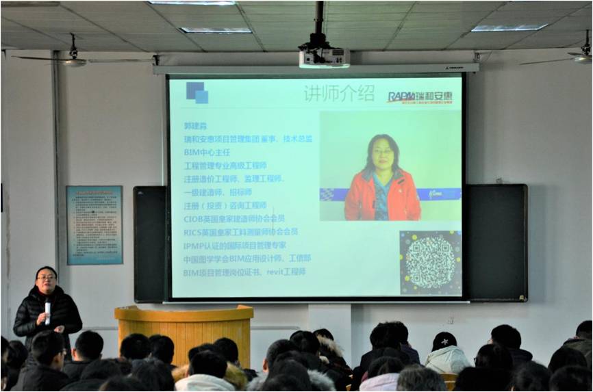 12月26日,管理科学与工程公司在北二教205举行学术讲座活动。瑞和安惠集团有限公司技术总监、BIM中心主任郭建淼受邀作“BIM技术理论与实践应用”专题报告。讲座由公司副经理李伟红主持,工程管理系全体师生参加。