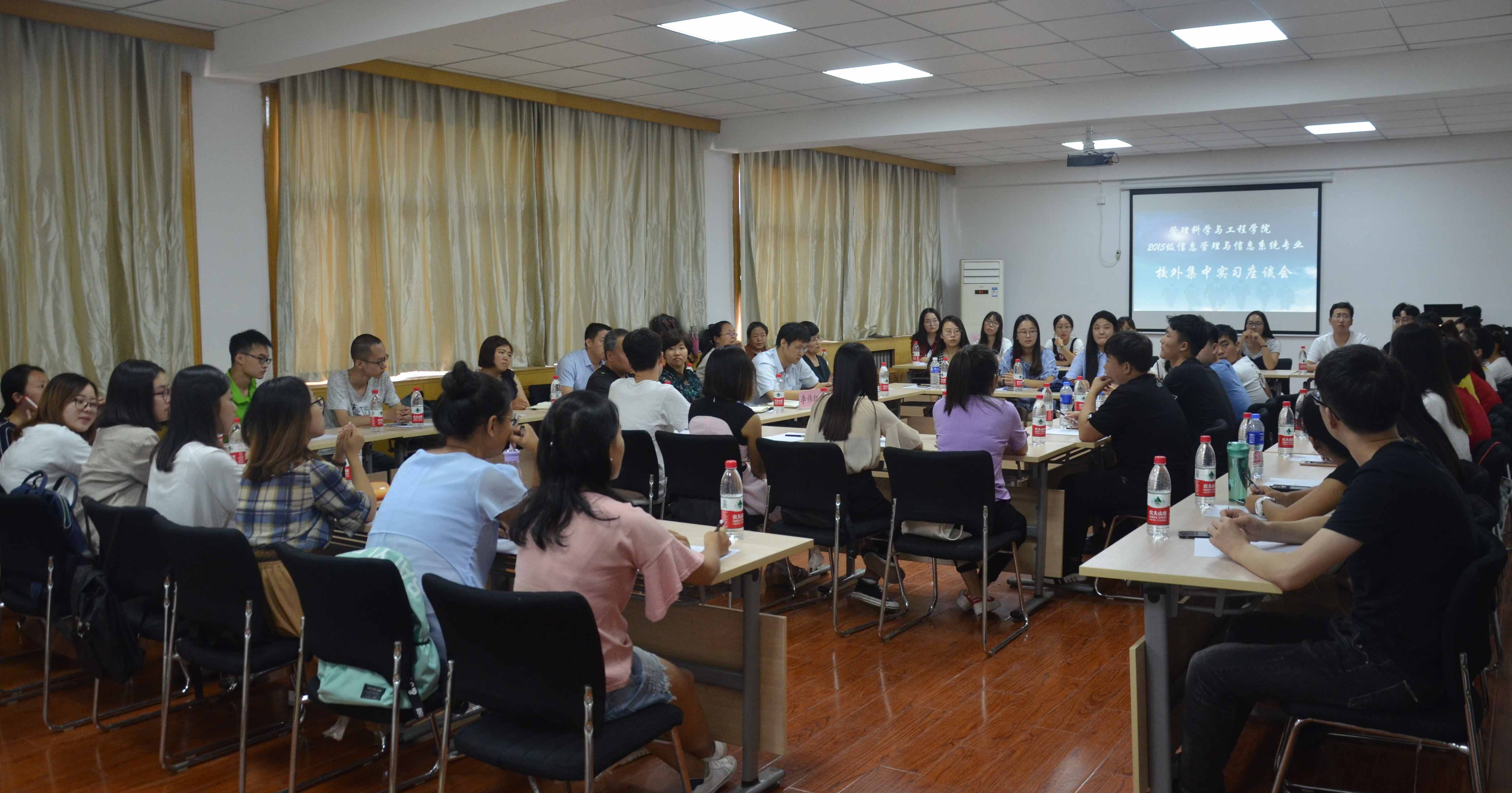 9月3日,管理科学与工程公司在一教408召开了校外集中实习座谈会。会议由公司经理武彦斌主持,副经理李伟红、部分教师及2015级信管专业全体员工参加。