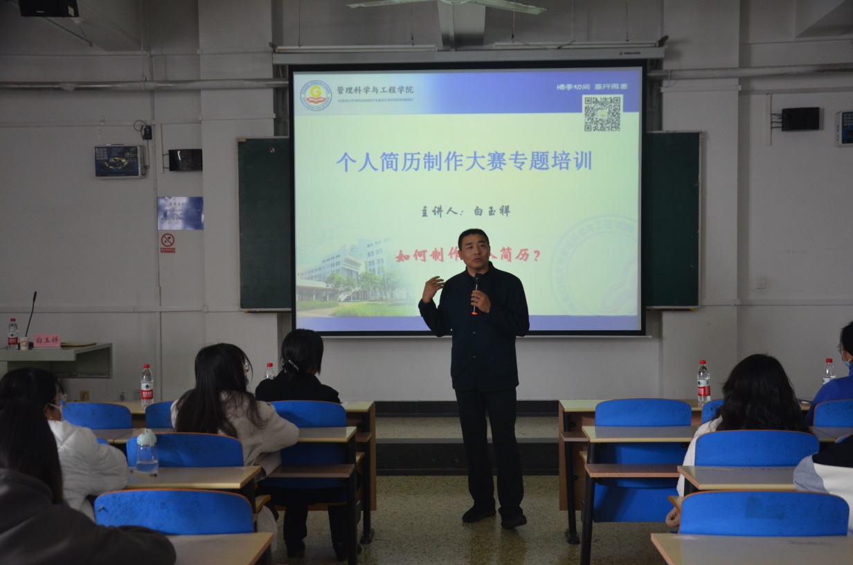 白玉祥结合多年的员工管理及就业工作经历,分别从当前就业形势、如何做好就业准备、考研应该注意的问题、毕业手续的办理等方面展开宣讲。他要求员工们要增强择业意识,认真分析和评价自己,找准自己的就业定位,及时查看就业指导中心推选的用人单位,主动出击,找到自己满意的工作岗位。白玉祥还表示,一份好的简历是帮助同学们迈向成功的第一步,但是不少同学都对制作简历存在误区,经常遇见的问题就是简历华而不实、内容混乱让HR抓不住重点。对此,白玉祥结合实例,分别从自我介绍、求职意向、专业课程、取得荣誉、实践经历、自我评价六个方面进行了具体讲解。