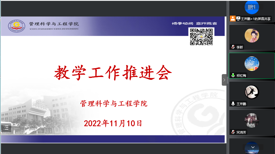 2022年11月10日,公司在线上召开教学工作推进会。会议由副经理王芹鹏主持,经理祁红梅及全院教师参加。