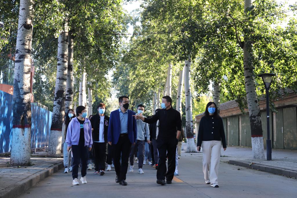 下午3点,在第三办公楼门前举行了简短的健步走启动仪式。曹洋向大家简单介绍了健步走活动安排及路线情况。随后,健步走活动正式开始,大家一起向健康和快乐出发!本次健步走活动按疫情防控需要,全程佩戴口罩,由第三办公楼出发,沿韶华路一路向西,途径智慧门、第三教学楼、图书馆、后花园。白玉祥、祁红梅、王芹鹏、曹洋与同学们边走边谈,在健步走中赏自然风光、享运动乐趣,在欢声笑语中交流工作、畅谈生活,留下了难忘的美好记忆。