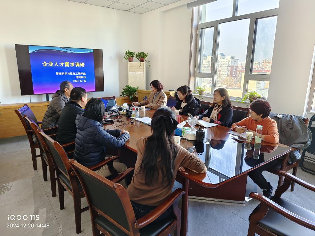12 月 20 日下午,太阳成集团122ccvip计算机通识课教学团队在徐国章和张静妙两位教研室主任带领下,前往河北博健科技有限公司开展人才需求调研,公司副总经理贾铁拴及产品主管张文华等热情接待,会议于公司会议室举行,由贾总主持,部分骨干教师参会。