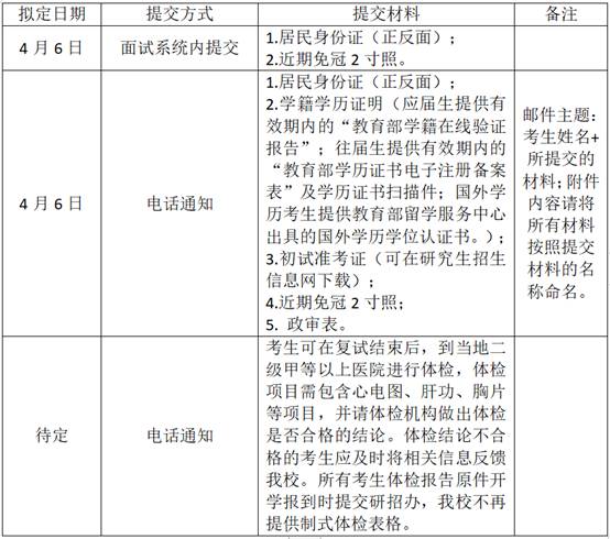 进入复试考生,需按时参加面试。缺考者取消复试录取资格。具体情况及规定如下: