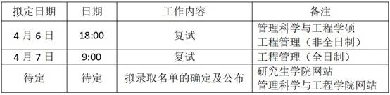 其他未尽事宜,以《2023年硕士研究生复试录取方案》、《复试须知》(务必请登录研究生公司网页查阅)和《2023年管理科学与工程公司硕士研究生复试录取工作实施细则》为准。