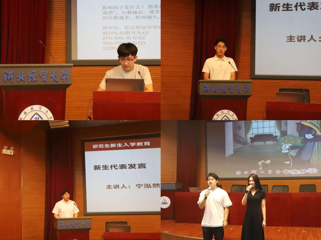 优秀在校生代表靳天禄通过介绍自身优秀科研经历,为新同学提出宝贵意见,助力新生科研之路。2025级研究生李雪佳、宁泓然作新生代表发言,感谢公司在迎新工作中的辛苦付出。同时表达了对研究生生涯的期待,号召同学们树立明确的目标,积极迎接新的学术挑战。研究生严超群、满晨阳带来歌曲《New Boy》,点燃现场氛围,以嘹亮动听的歌声唱颂青春。