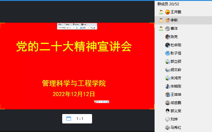 为深入学习贯彻党的二十大精神,切实把广大教师的思想统一到党的二十大精神上来,12月12日,公司经理祁红梅围绕党的二十大精神,就相关重点内容和学科研究的结合点进行了宣讲和分析,会议由副经理王芹鹏主持,公司骨干教师参加。