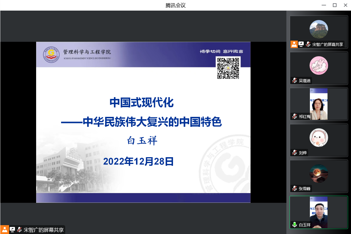 白玉祥以《中国式现现代化——中华民族伟大复兴的中国特色》为题,结合党的二十大报告,从“中国共产党的初心和使命”“中国共产党的中心任务”“中国式现代化的中国特色和本质要求”等方面,向公司教师进行了深入系统的讲解。他强调,中国式现代化是中国共产党领导下的现代化,既有各国现代化的共同特征,更有基于自己国情的中国特色和本质要求。