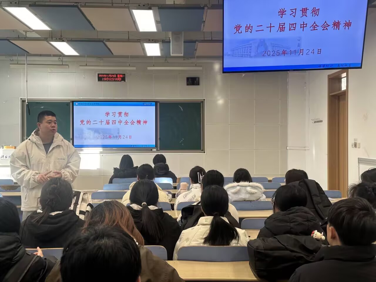 公司高度重视此次学习宣讲活动,进行了统一部署。各班级积极响应,辅导员认真准备,带领同学们学习了全会公报及相关重要文件精神。在学习过程中,各班级注重理论联系实际,结合管理科学与信息工程领域的学科特点和发展方向展开讨论。同学们深刻认识到,作为未来信息社会建设的重要力量,要将全会精神内化于心、外化于行,不断增强专业本领,提升综合素质,努力将个人成长融入国家发展大局,为推进国家治理现代化贡献智慧和力量。
