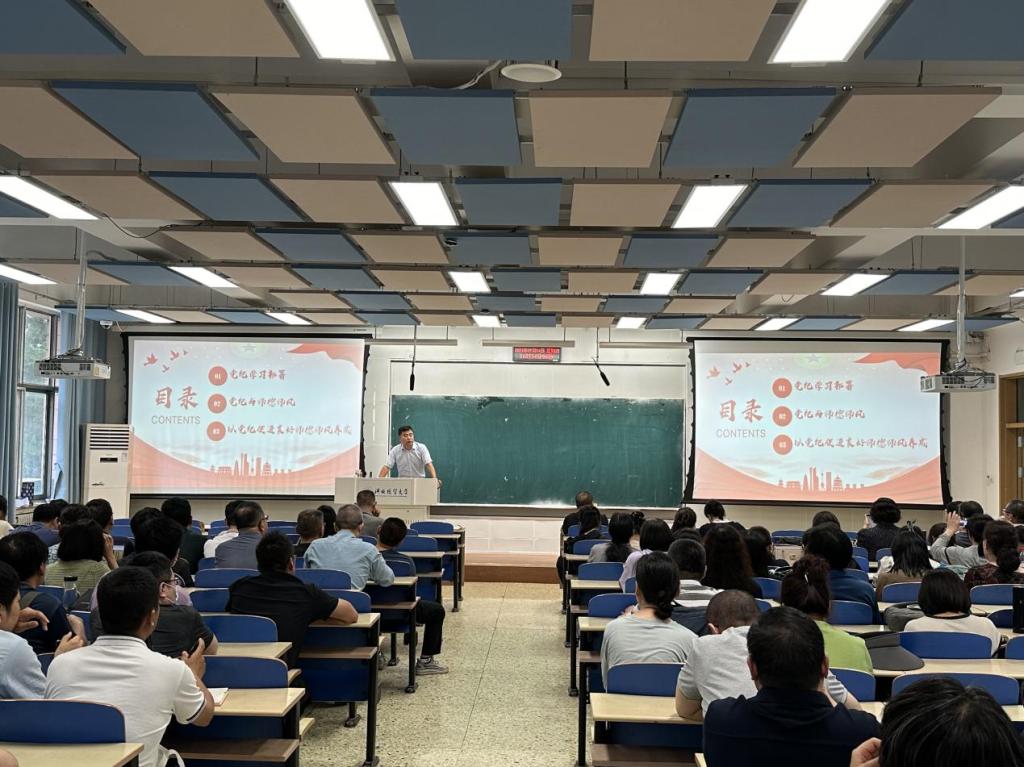 7月4日下午,经理孙立辉以“学纪、知纪、明纪、守纪——以党纪学习教育促进师德师风建设”为题,为全体教职工讲授专题党课。