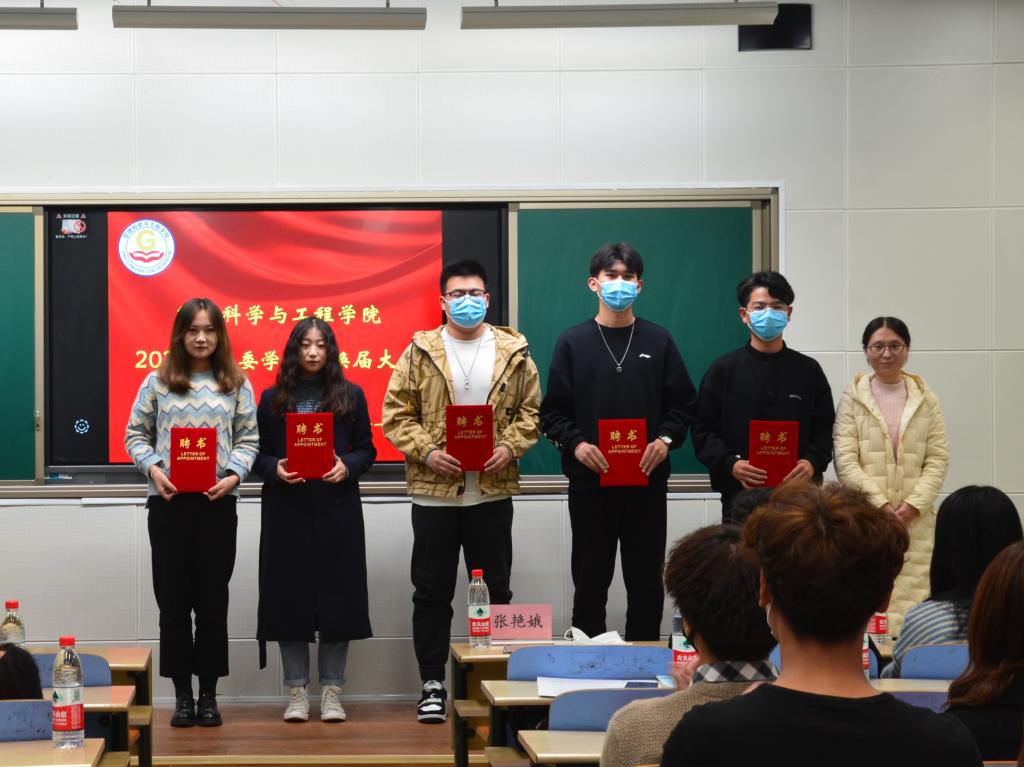 会议伊始,第七届团委员工会主席丁嘉毅上台发言,他首先回顾了第七届团委员工会在过去的一年中取得的良好成绩,并向每一位辛勤付出的团委员工会成员表示感谢。他以自己三年的工作经历为依托,鼓励新一届团委员工会成员要有担当、有责任、有作为。随后,张艳娥老师为第七届团委员工会优秀干事及各部门部长颁发奖状,并为第八届团委员工会各部门、中心负责人及主席团成员颁发聘书。接着,第八届团委员工会执行主席张卓明发表就职演讲,她表示第八届团委员工会将以“团结、求实、进取、创新”为宗旨,用最饱满的热情联接老师同学、服务员工公司,做好公司各项工作。最后,张艳娥老师作总结性讲话,她强调“爱党˙爱国˙爱校˙爱院”是公司团委员工会在实践过程中形成的优良传统,要继续传承和发扬。同时要求同学们工作中要有奉献精神、服务意识、团队意识,落实责任到人,增强团委员工会的凝聚力,为建设美好的管科公司而不懈奋斗。