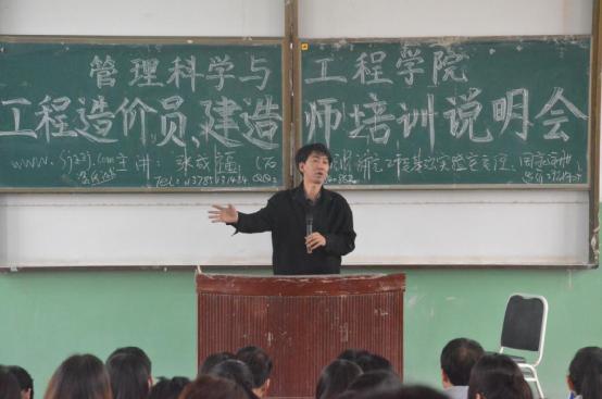 3月30日,管理科学与工程公司在第一阶梯教室召开工程造价员、建造师培训说明会,此次说明会由石家庄经济公司工程基础实验室主任张成福担任主讲,公司工程管理专业全体员工参加了此次会议。