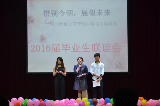 5月9日,管理科学与工程公司于老员工活动中心3号厅举办“‘惜别今朝,展望未来’—2016届毕业生联谊会”。公司领导、全体辅导员及部分教师代表出席了此次活动,2016届全体毕业生参加。会议由公司党委副书记张晓军主持。