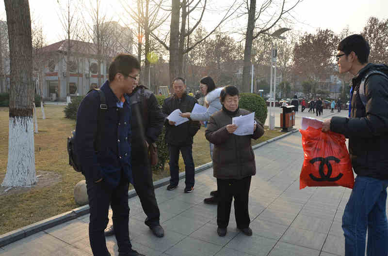 实践最后一天,小分队来到石家庄市新华区,走访了河北省环境保护厅,并深入社区、街头,同不同层次、不同年龄、不同职业的人进行了面对面的交流,就雾霾的产生、雾霾的危害、雾霾对生活的影响、雾霾的防治等问题进行了调研。小分队还向广大市民预防雾霾危害的知识,并分发了“向雾霾说‘不’”倡议书以及防雾霾口罩,呼吁广大市民积极投入到“保护环境,共防雾霾”的行列中来,为美丽河北建设作出积极贡献。(撰稿:朱越 摄影:周新雨)