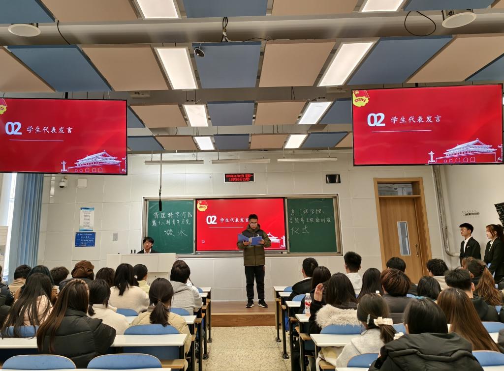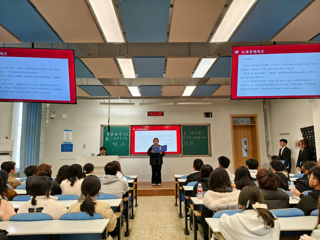 为保障培训质量、营造严谨学风,仪式现场由纪律委员崔域楹宣读《青马培训班纪律管理规定》。规定明确了学习纪律、请假纪律等核心要求,明确学员处分分为警告和开除两类,对考勤管理、课堂行为、作业完成、请假流程等作出详细规范,强调将定期通报违纪情况,引导学员严格遵守班风班纪,维护良好学习秩序。