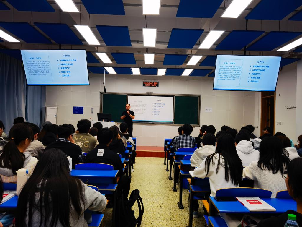主讲人刘军池老师任河北新龙科技集团副总经理,产教融合研究院经理。具有丰富数据技术方面经验,就数智化转型、集成化管理等方面为同学们讲解了大数据的广泛应用。通过大数据的生产力价值、大数据行业应用、数据资产化、数据分析师和互动交流五项环节,向同学们讲述了专业学习的重要性以及努力方向。