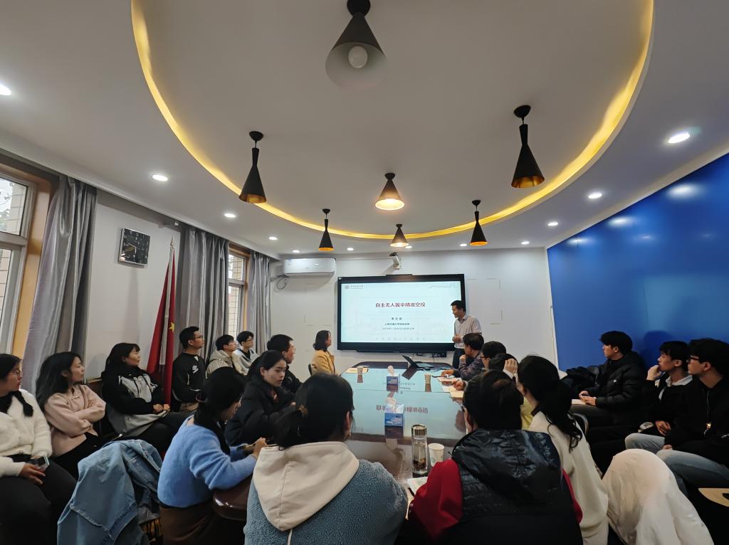 李元龙从研究背景和主要工作出发,详细介绍了自主无人翼伞的广泛应用背景及其在自主归航任务中的航迹规划与轨迹跟踪控制方法,最后展示了实验平台及效果。讲座结束后,李元龙与在场师生进行了积极互动,认真解答了公司师生提出的问题。