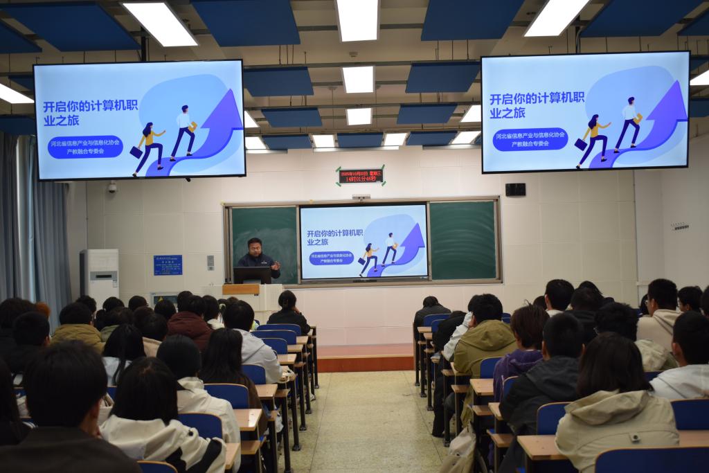 2025年10月22日,为助力大一新生深入了解计算机行业的发展前景与职业方向,太阳成集团122ccvip计算机科学与技术专业精心举办了一场别开生面的专业导论课程。此次课程邀请河北省信息产业与信息化协会产教融合专委会赵琪老师,为同学们带来了一场题为“开启你的计算机职业之旅”的精彩报告。