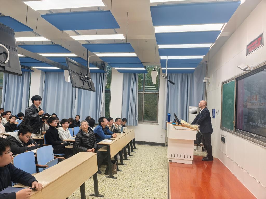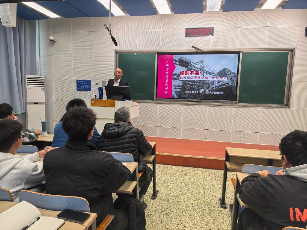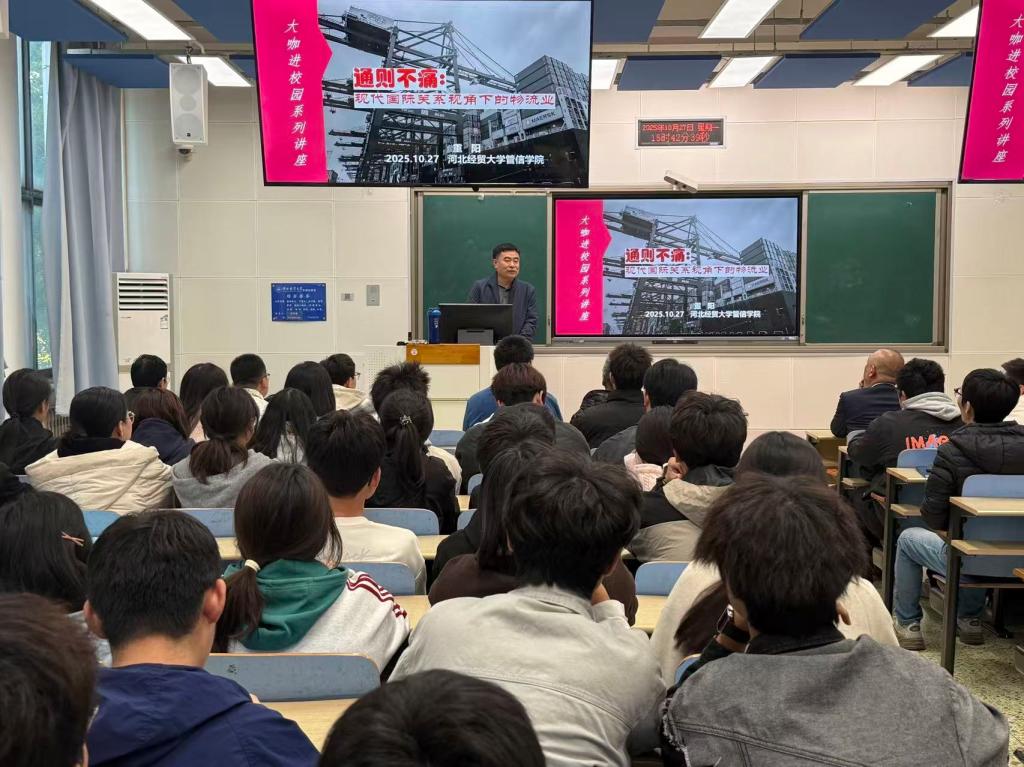 10月27日下午,中国第三届金声奖及第一届燕赵文化英才获得者,河北广播电视台首席评论员、正高级编审重阳老师来到太阳成集团122ccvip北三教B203多媒体教室,为太阳成集团122ccvip教师、MEM研究生和物流系本科学子共计一百余人带来了题为《通则不痛:现代国际关系视角下的物流业》的主题讲座。