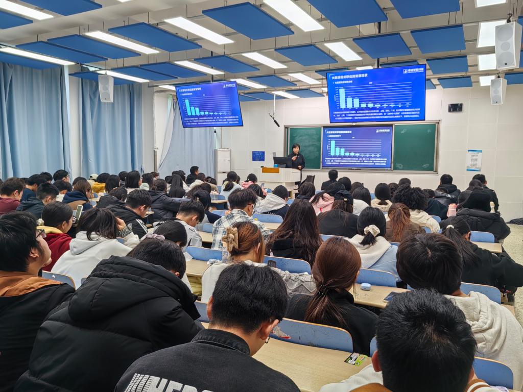 讲座中,曹玉红总监首先讲解了信息技术时代、大数据技术时代以及人工智能时代的发展趋势,帮助员工理解技术演进的脉络。她详细介绍了大数据在医疗、互联网、金融、电商、政府等多个领域的应用场景,展示了大数据技术如何赋能各行各业的数字化转型。随后,曹总监分析了当前大数据行业的发展现状,包括市场需求、技术热点以及人才培养方向。她特别以旅游大数据平台为案例,深入讲解了全域旅游中大数据的采集、分析与应用,让员工直观感受到大数据技术的实际价值。此外,曹总监为同学们介绍了有关大数据方面的竞赛情况,鼓励员工积极参与专业竞赛,通过实践提升专业技能。