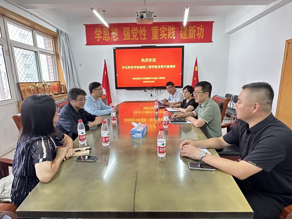 9月20日,华北科技公司建筑工程公司副经理石祥锋一行3人到公司就工程管理硕士MEM学位点建设进行了调研交流。副经理王芹鹏、MEM中心副主任杜命刚、工程管理系副主任宋晓刚、学科秘书曹洋参加了座谈交流。
